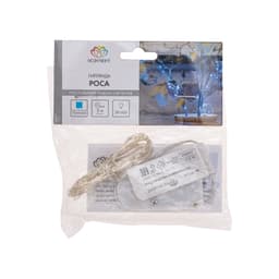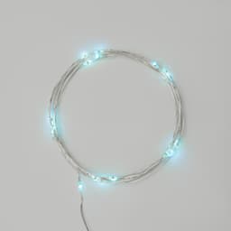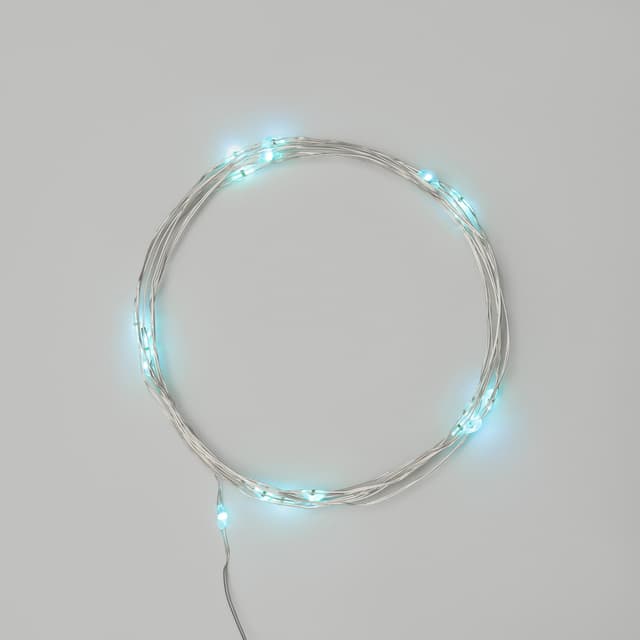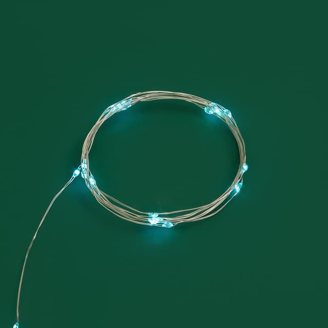 Гирлянда «Роса» длиной 2 метра питается от двух батареек типа CR2032, которые идут в комплекте поставки. Независимость от электросети дает большие возможности в создании уникального декора: изделие подходит для украшения различных интерьерных предметов, композиций и даже букетов из цветов. 20 диодов, расположенных на серебристом проводе светятся голубым. Гирлянда, подобно проволоке, имеет свойство фиксироваться в выбранном положении. Блок с батарейками находится на конце электрокабеля длиной 30 см. Изделие на батарейках, оно безопасно в использовании и подойдет для декора даже в детской комнате.