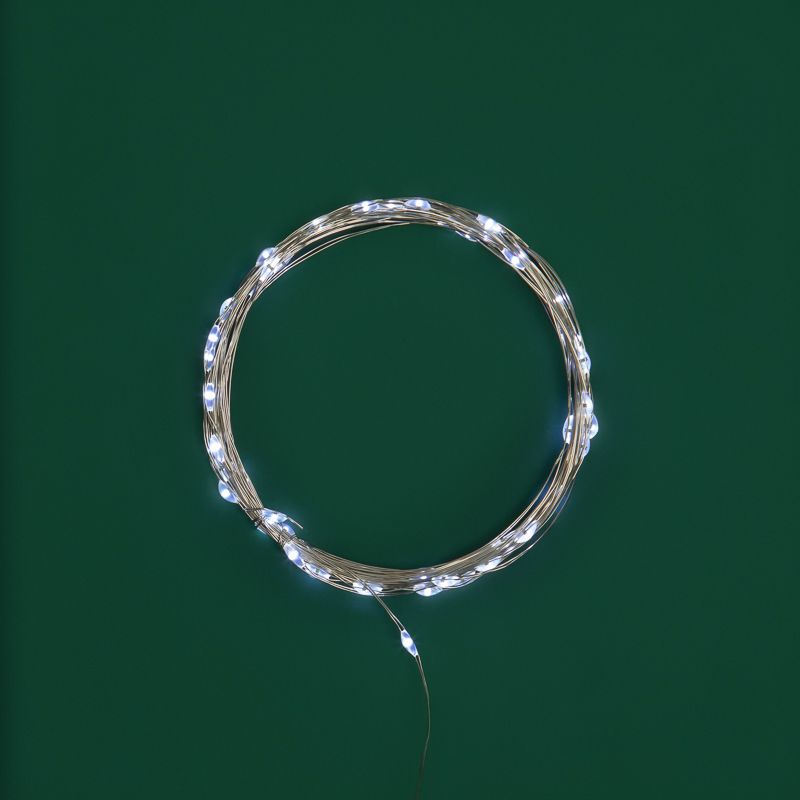 Гирлянда состоит из тонкого провода длиной 5 метров, с расположенными на нем 50 белыми долговечными светодиодами.