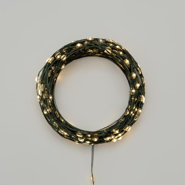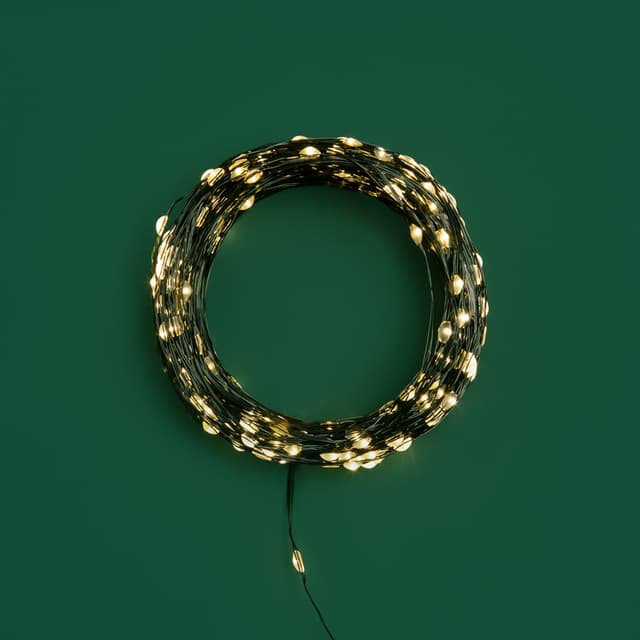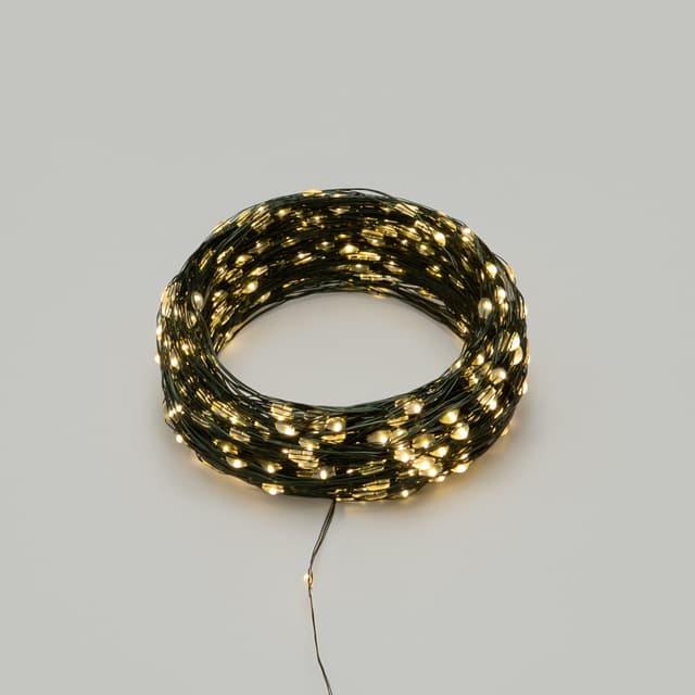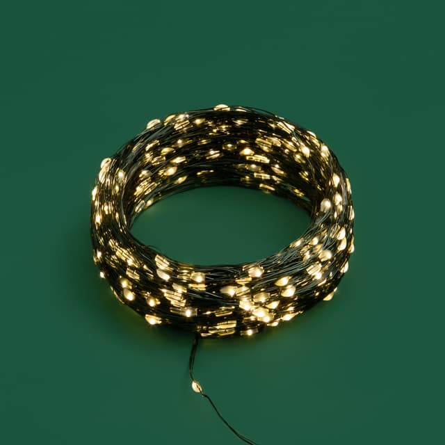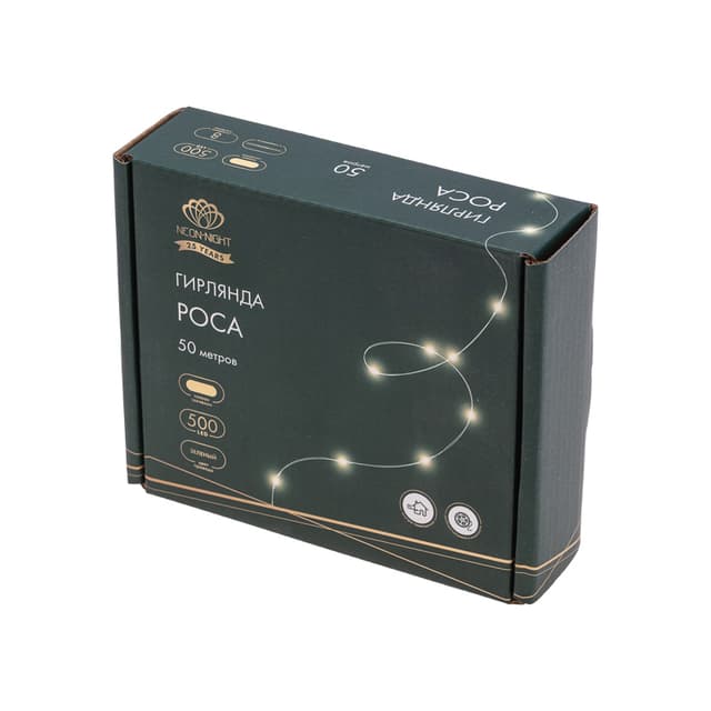 Гирлянда Роса длиной 50 метров представляет собой тонкий провод зеленого цвета, на котором расположены маленькие светодиоды, напоминающие капли росы. Благодаря своей универсальности гирлянда применяется для украшения любых предметом интерьера и используется для создания романтических образов на фотосессиях, свадьбах, днях рождениях и других праздниках. Отлично подходит для украшения новогодней елки. Роса излучает теплое белое свечение, которое создает уютную и приятную атмосферу в любом помещении. При работе гирлянда не нагревается, что делает ее абсолютно безопасной. Гирлянда имеет 8 режимов свечения. Оснащена трансформатором и контроллером, который позволяет выбирать необходимый режим работы.