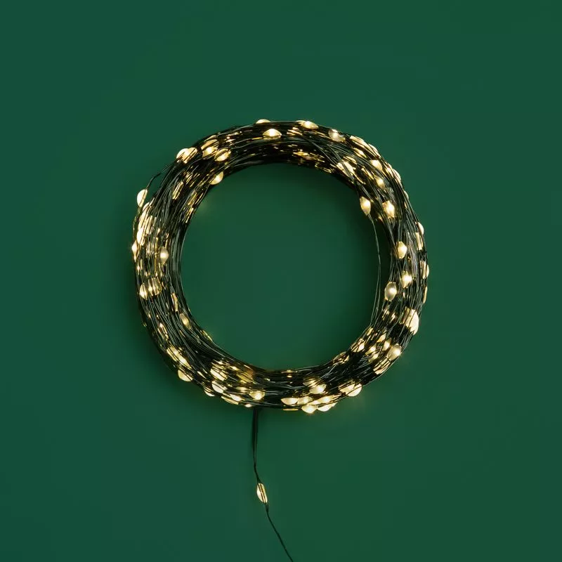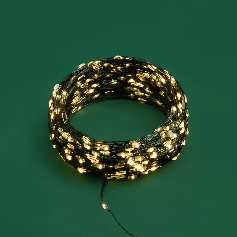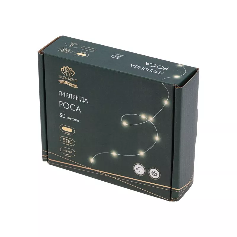 Гирлянда светодиодная Роса с контроллером 50м, 500LED, ТЕПЛЫЙ БЕЛЫЙ, IP20, 230В, зеленый провод NEON-NIGHT