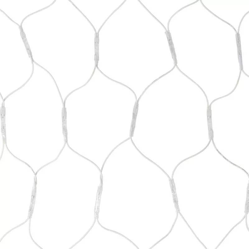 Светодиодная гирлянда Сеть выполнена в форме прямоугольника, разделенного на равные ромбы. В углах этих ромбов располагаются светодиоды теплого белого цвета.