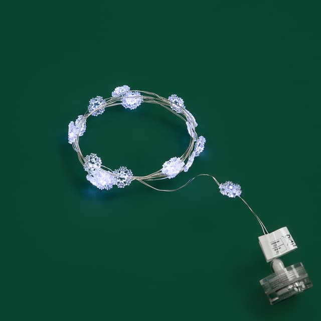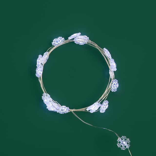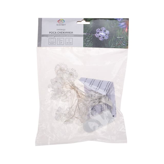 Гирлянда «Снежинки» длиной 2 метра — эффектное зимнее украшение, которое подарит ощущение сказки и приближающихся праздников. 20 ярких белых светодиодов находятся внутри пластиковых насадок, искусно выполненных в виде снежинок. Изделие не требует подключения к электросети: питается от двух источников CR2032, что говорит об абсолютной безопасности в использовании. Одного комплекта батареек хватает на 48 часов непрерывного свечения. . Серебристый кабель обладает способностью сохранять форму при изгибе — гирлянда идеально подходит для декора сложных конструкций.