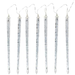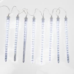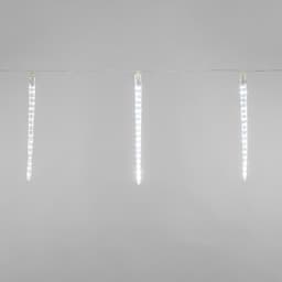 Светодиодная гирлянда «Сосульки» станет великолепным украшением интерьера: гармонично дополнит карниз, гардину, дверной проем, различные элементы мебели и внесет атмосферу зимней сказки в ваш дом. На серебристом проводе располагаются 8 прозрачных трубок из ПВХ, внешне напоминающие сосульки, внутри которых находится плата с маленькими диодами белого свечения. Микрочип обеспечивает светодинамический эффект стекающей капли. Гирлянда с защитой IP20 работает от сети 230 Вольт, подходит для использования в помещениях. Для подключения в розетку предусмотрен питающий шнур длиной 1.5 метра.