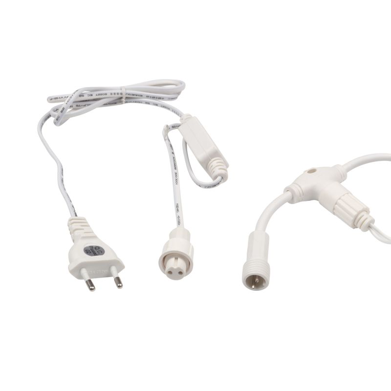 На концах шины располагаются коннекторы, которые предназначены для последовательного соединения нескольких гирлянд в большой занавес для украшения больших площадей или объемных объектов.