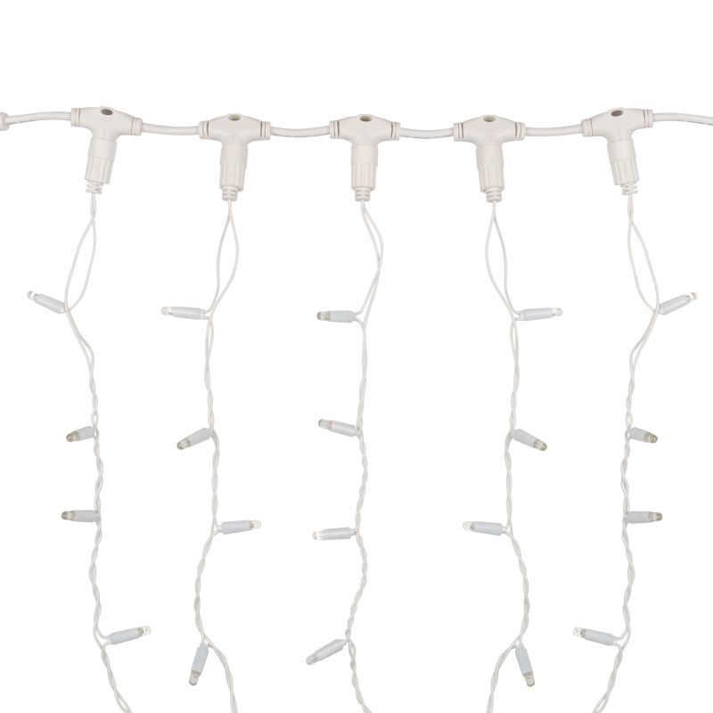 Светодиодная гирлянда Занавес (Дождь) представляет собой гибкий горизонтальный шнур-шину 2 м, к которому через определенные промежутки крепятся 20 вертикальных нитей равной длины со светодиодами.