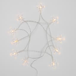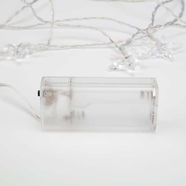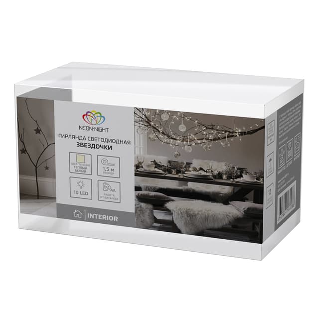 Светодиодная гирлянда «Звездочки» длиной 1,5 метра — яркая, запоминающаяся, оригинальная, по-настоящему новогодняя — красивый декор для интерьера в любом стилевом решении. 10 насадок в виде звезд расположены на гибком кабеле, защищенном изоляцией из прозрачного ПВХ. Степень защиты IP20 предполагает использование изделия в отапливаемых помещениях с умеренной влажностью. 10 диодов светятся в постоянном режиме и питаются от двух батареек типа АА. Гирлянда абсолютно безопасна и может использоваться для оформления детских комнат.