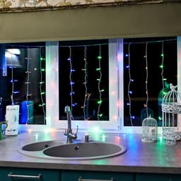 Гирлянда «Дождь» 1,5×1 м в виде занавеса прекрасно подходит для оформления окон в жилых и офисных помещениях. 96 ярких светодиодов, равномерно расположенных по всей длине провода, светятся разноцветными огнями, создавая атмосферу праздника и веселья. Трехметровый шнур питания позволяет подключить изделие к розетке без дополнительных удлинителей. Контроллер на 8 режимов дает возможность управлять подсветкой, меняя динамику свечения.