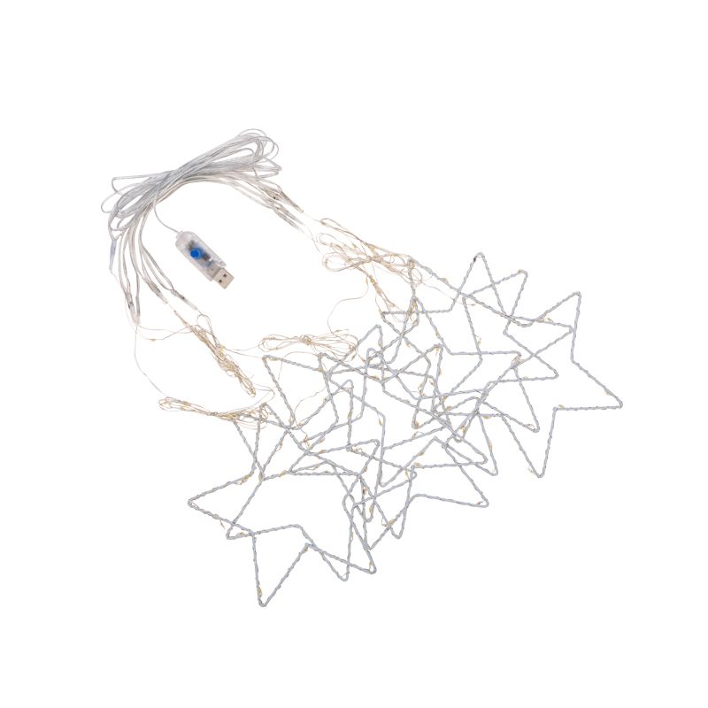 Гирлянда Светодиодный занавес из росы с фигурами Звезд ТЕПЛЫЙ БЕЛЫЙ IP20 USB + пульт управления NEON-NIGHT