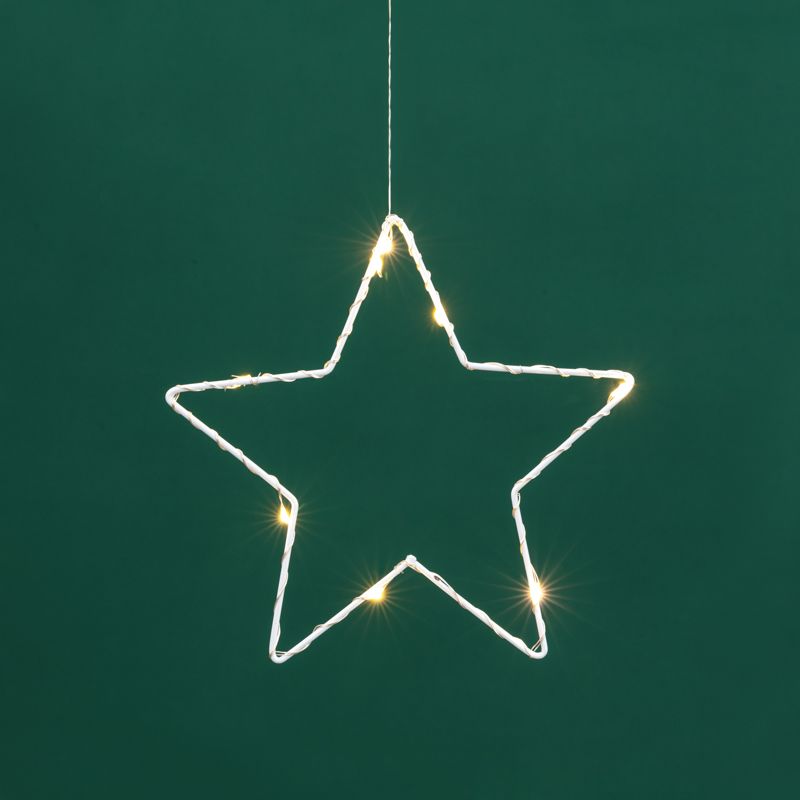 Гирлянда представляет собой горизонтальный шнур-шину, к которому крепятся вертикальные длинные нити, украшенные фигурами звезд.