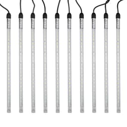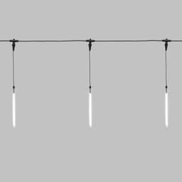 Светодиодная гирлянда Тающие сосульки – это оригинальное, красивое и современное решение для оформления деревьев или витрин. Тающие сосульки зачастую сочетают вместе с гирляндой Бахрома при украшении фасадов зданий или при оформлении растяжек. Гирлянда представляет собой готовый к использованию комплект: 10 пластиковых трубок и каучуковая шина, на которой расположены коннекторы с заглушками. На каждой трубке есть провод длиной 35 см, на конце которого также находится коннектор. Для того, чтобы собрать гирлянду необходимо соединить коннектор на проводе и коннектор на шине. Подключение всех трубок необязательно – можно использовать любое количество по вашему усмотрению. Гирлянда работает от напряжения 24 В, трансформатор (блок питания) поставляется в комплекте. К одному трансформатору можно подсоединить 50 м гирлянды. Степень влагозащиты IP65 и утолщенный морозостойкий провод из каучука (резины) позволяют использовать гирлянду на улице.