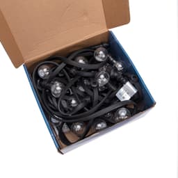 LED Galaxy Bulb String состоит из гирлянды семейства Белт-лайт и 30 круглых светодиодных ламп. В каждой лампе по 6 светодиодов. Элементы светятся разными цветами в постоянном режиме. Основной кабель помещен в изоляцию из черного каучука. Гибкий прочный полимер легко выдерживает сильные морозы (до –40 °С). Защита IP65 исключает повреждение от воды, поэтому декор можно использовать на улице даже в дождливую погоду. При необходимости можно соединить несколько гирлянд Белт-лайт при помощи встроенного в конструкцию разъема, чтобы получить украшение длиной до 100 метров.