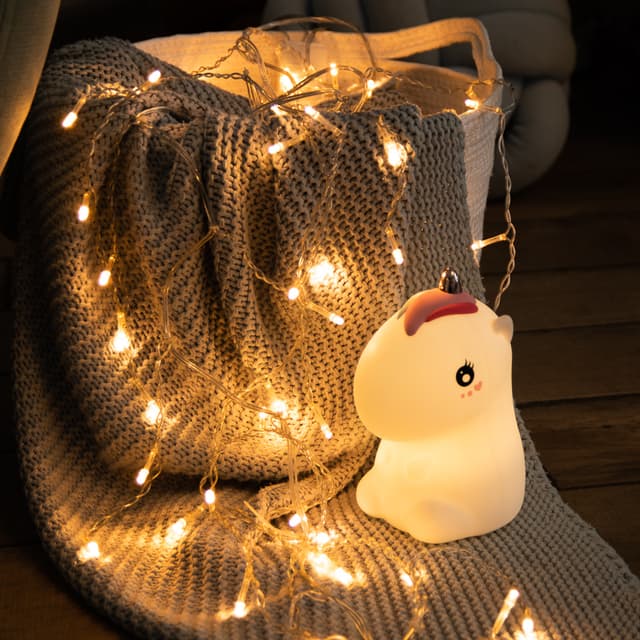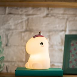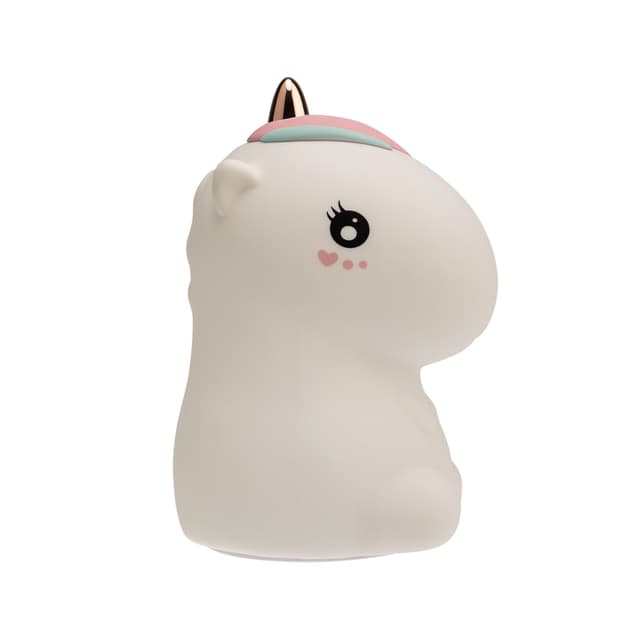 Беспроводной силиконовый ночник NEON-NIGHT «Единорог» не имеет запаха, выполнен из экологически чистых гипоаллергенных материалов. Благодаря технологии Soft-touch светильник приятно держать в руках: может использоваться в качестве игрушки. Ночник рассчитан на 3 режима: постоянное белое свечение теплого оттенка, плавная смена цветов RGB в диапазоне 256 оттенков, свечение одним из цветных вариантов. Смена опции осуществляется легким хлопком по корпусу. Силиконовый ночник заряжается через USB-порт (кабель в комплекте) и работает 9-11 часов от одного заряда. В основании светильника расположена кнопка включения/выключения. Характеристики: Размер: 101х120х173 мм Мощность: 0,4 В Количество светодиодов: 8 LED Количество режимов свечения: 3 Время автономной работы: 9-11 часов Время зарядки: 8 часов Встроенный аккумулятор: да Материал: силикон, ABS-пластик Рабочая температура: +1...+35 °С Степень защиты: IP20 USB-кабель: да Преимущества: Мягкий корпус Возможность использования ночника в качестве игрушки Встроенный аккумулятор для автономности изделия Смена режимов хлопком по корпусу Широкий спектр свечения