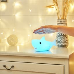Силиконовый ночник «Шарк» – эффектный дизайнерский ночник в форме милой акулы. Выполнен из приятного на ощупь силикона. Забавный персонаж придется по душе каждому ребенку, станет его лучшим другом, который поможет быстро и крепко заснуть. Ночник светится теплым белым цветом, плавно меняет оттенки RGB-диодов или светится одним цветом из 256 вариантов. Изделие не нагревается, не имеет неприятного запаха, острых углов и опасных деталей. Ночник заряжается через USB-порт, одного объема аккумулятора хватает на 9-11 часов. Режимы переключаются легким хлопком по корпусу. Силиконовый ночник «Шарк» – это надежный и самый симпатичный светильник для детей и для взрослых. Особенности: Безопасный Светильник и игрушка 2 в 1 Рассеивает приятный и мягкий свет