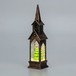 Декоративный светильник Башня – оригинальное новогоднее украшение, которое создано для того, чтобы принести атмосферу праздника в ваш дом. Светильник с эффектом снегопада и подсветкой выполнен в бронзовом цвете, внутри находится фигурка Новогодней елки. Для активации эффекта конфетти - просто встряхните фонарь в руке! Светильник работает от 3 батареек типа LR44, что позволяет разместить его в любом удобном месте.