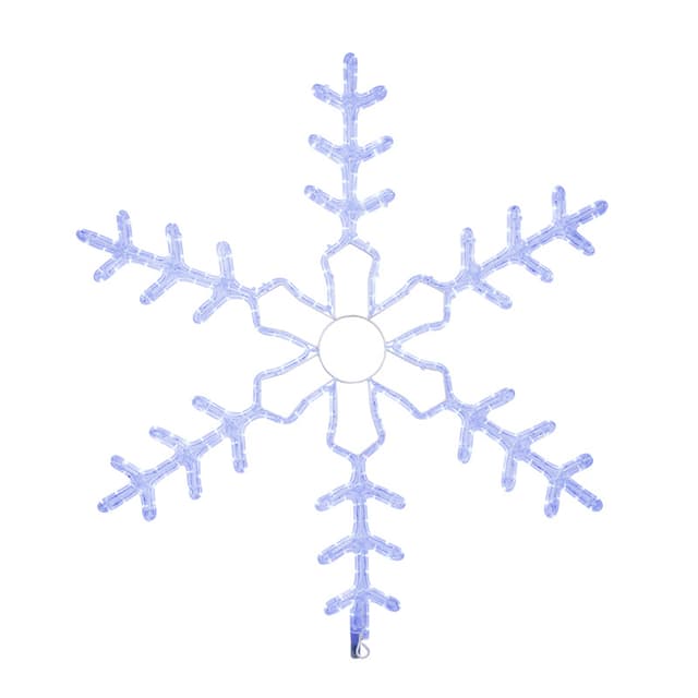 Фигура "Большая Снежинка" изготовлена из светодиодного дюралайта, который закреплен на металлическом каркасе. Такие фигуры используются для украшения фасадов и стен как коммерческих, так и частных домов и дач, торговых центров, елей, витрин магазинов, кафе и многих других объектов. Фигура имеет в комплекте шнур питания с вилкой, благодаря чему удобна в подключении. Наличие специального "ушка" на металлиском каркасе заметно облегчит ваш монтаж. Снежинка имеет размер 95*95 см и Синяя свечение светодиодов.