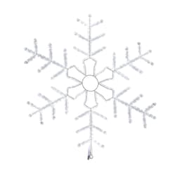 Фигура "Снежинка" изготовлена из светодиодного дюралайта, который закреплен на металлическом каркасе. Такие фигуры используются для украшения фасадов и стен как коммерческих, так и частных домов и дач, торговых центров, елей, витрин магазинов, кафе и многих других объектов. Фигура имеет в комплекте шнур питания с вилкой, благодаря чему удобна в подключении. Наличие специального "ушка" на металлиском каркасе заметно облегчит ваш монтаж. Снежинка имеет размер 95*95 см и Белое свечение светодиодов. Особенность данной Снежинки - это наличие мерцающих светодиодов Белого цвета, которые привлекают внимание и значительно преображают украшенную поверхность (мерцает каждый пятый светодиод).