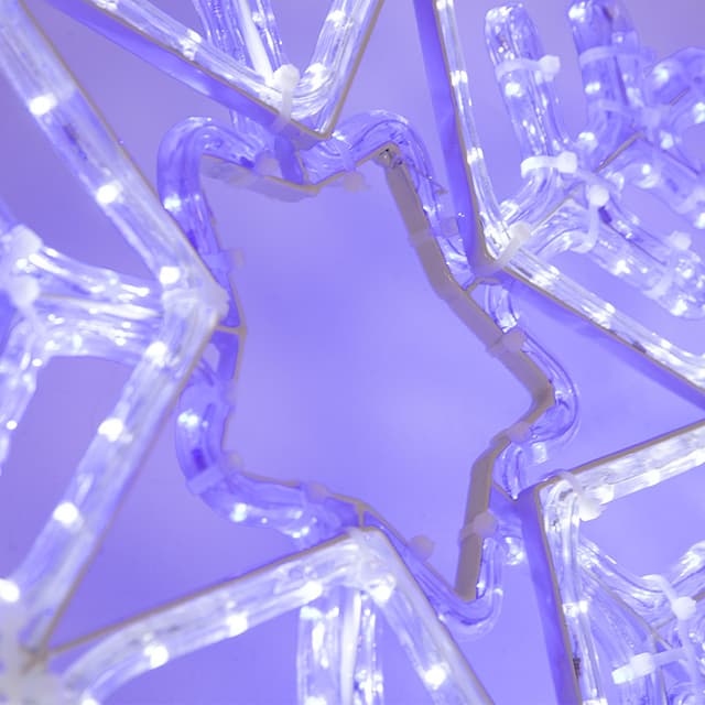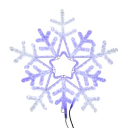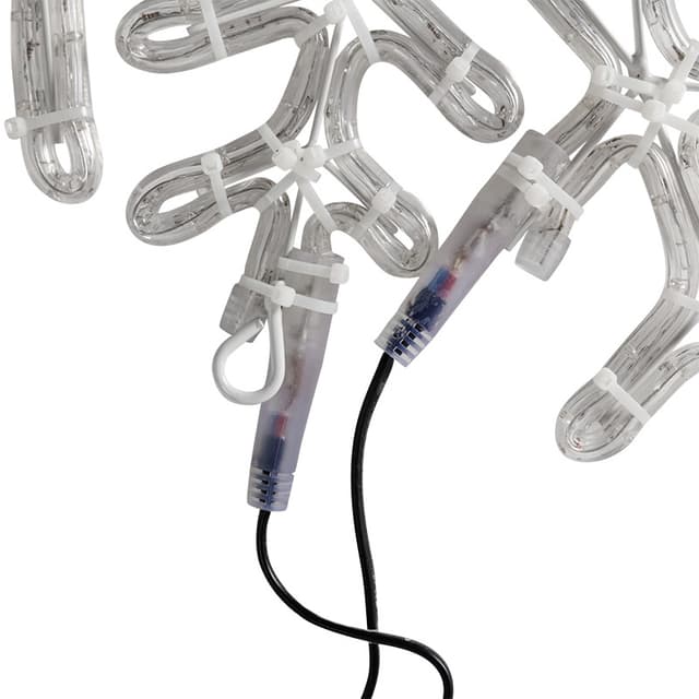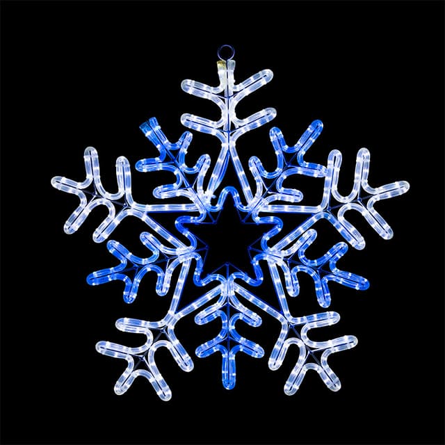 Фигура «Снежинка» изготовлена из светодиодного дюралайта с белым и синим свечением, который закреплен на металлическом каркасе. Такие фигуры используются для украшения фасадов и стен как коммерческих, так и частных домов: дач, торговых центров, елей, витрин магазинов, кафе и многих других объектов. В комплекте с фигурой поставляется шнур питания с вилкой, который делает подключение удобным, а также контроллер с эффектом памяти. Наличие специального «ушка» на металлическом каркасе заметно облегчает монтаж.