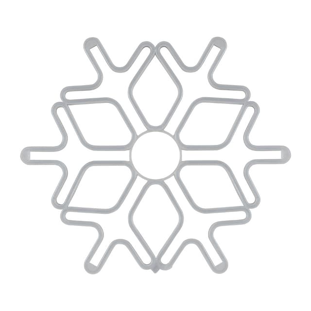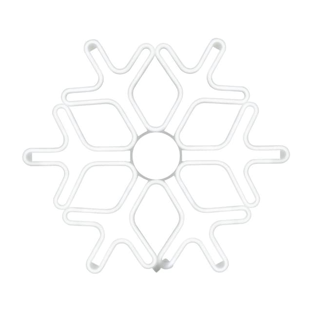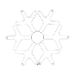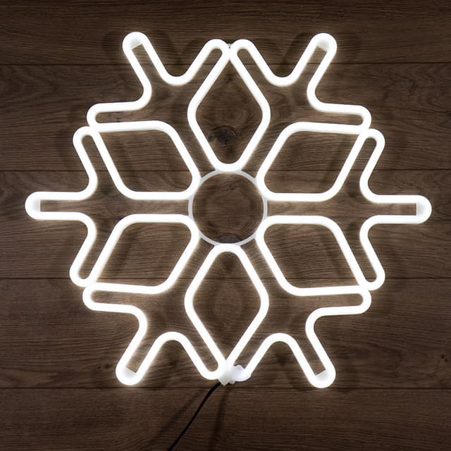 Фигура «Снежинка» изготовлена из гибкого неона, который закреплен на пластиковом каркасе. Такие фигуры используются для украшения фасадов и стен как коммерческих, так и частных домов и дач, торговых центров, елей, витрин магазинов, кафе и многих других объектов. Фигура имеет в комплекте шнур питания с вилкой, благодаря чему удобна в подключении. Наличие специального «ушка» на металлическом каркасе заметно облегчит монтаж. «Снежинка» имеет размер 60х60 см и белое свечение светодиодов.