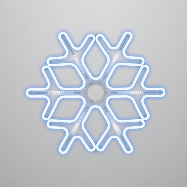 Фигура «Снежинка» изготовлена из гибкого неона, который закреплен на пластиковом каркасе. Такие фигуры используются для украшения фасадов и стен как коммерческих, так и частных домов и дач, торговых центров, елей, витрин магазинов, кафе и многих других объектов. Фигура имеет в комплекте шнур питания с вилкой, благодаря чему удобна в подключении. Наличие специального «ушка» на металлическом каркасе заметно облегчит ваш монтаж. «Снежинка» имеет размер 60х60 см. Цвет свечения синий и белый.