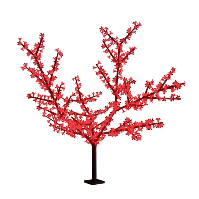 Светодиодное дерево «Сакура» высотой 1,5 метра с 864 декоративными цветами создано, чтобы эффектно украсить интерьер или уличное пространство. Оригинальная композиция в виде японской вишни подсвечивается красными диодами, работающими в постоянном режиме. Крона диаметром 1,8 метра состоит из аккуратных реалистичных ветвей, выполненных из черного ПВХ. Вся конструкция имеет полноценную влагозащиту IP65 — подходит для размещения как дома, так и на улице. Ствол устанавливается в прочное основание с отверстиями под анкерный крепеж. Для подключения в электросеть предусмотрен понижающий трансформатор.