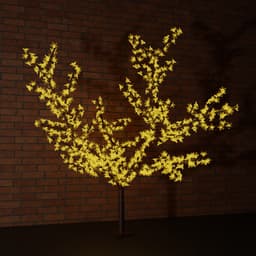Светодиодное дерево «Сакура» высотой 1,5 метра создано, чтобы перевернуть представление о современном световом декоре. Яркое, безопасное, оригинальное и очень эффектное украшение можно разместить как дома, так и на улице благодаря влагозащите IP65. Конструкция легко выдерживает перепады температур в диапазоне –40...+50 °С. Композиция состоит из ствола и ветвей, выполненных из черного ПВХ, на которых рассыпаны цветы японской вишни. Пластиковые декоративные элементы подсвечиваются 864 желтыми диодами. Дерево питается от стандартной сети 230 В, адаптер входит в комплект.