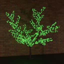 Светодиодное дерево «Сакура» высотой 2,4 метра имеет сборную конструкцию, которая легко монтируется по инструкции. Опорой служит металлическое основание с отверстиями для анкерного крепежа. В объемной кроне диаметром 1,7 метра находятся 600 декоративных пластиковых цветов, подсвечиваемые 600 яркими зелеными диодами. Экономичные, безопасные светодиоды рассчитаны на 100 тысяч часов непрерывной работы. Дерево подключается в электросеть с напряжением 230 Вольт через понижающий трансформатор (входит в комплект). Защита IP65 предполагает использование изделия как в помещениях, так и на улице.