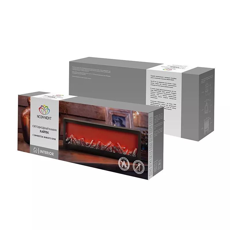 Светодиодный камин Хайтек с эффектом живого огня 60х10х20 см, батарейки 3хС (не в комплекте) или от USB (в комплекте)