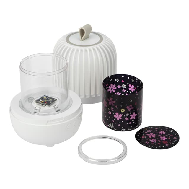 Светодиодный ночник-проектор с 3 сменными слайдами создает проекции с карточек на любые поверхности. Проектор оснащен вращающимся механизмом, который позволит наполнить комнату тематическими картинками: Вселенная/Морская/Цветущая вишня. Проектор обладает музыкальной функцией, нажатием соответствующей кнопки можно переключаться между 8 мелодиями. С помощью такого проектора можно организовать увлекательную игру, которая непременно понравится детям или оформить интерьер световыми проекциями. Проектор имеет встроенный аккумулятор, время работы которого составляет от 3,5 до 24 часов. В комплекте есть USB-шнур для зарядки устройства. Перед использованием необходимо удалить защитную пленку со слайдов, для большей яркости.