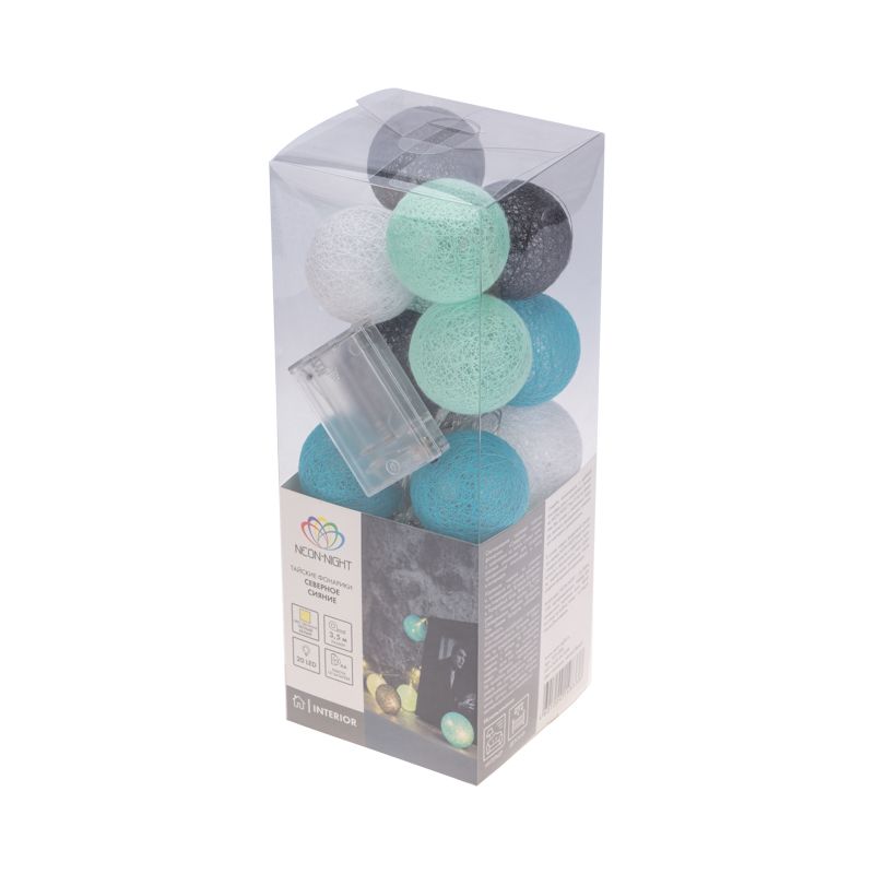 Тайские фонарики «Северное сияние» — светодиодная интерьерная гирлянда длиной 3,5 метра, которая имеет необычное, оригинальное оформление. 20 волшебных фонариков, выполненных из хлопковых нитей, располагаются на серебристом кабеле в прозрачной ПВХ-изоляции. Текстильные декоративные элементы, мягко подсвечиваемые изнутри белыми диодами, станут стильным украшением любой обстановки. Гирлянда получает питание от двух батареек АА, которые размещаются в специальном блоке на конце кабеля. Изделия с батарейками можно размещать даже в детских комнатах благодаря повышенной безопасности.