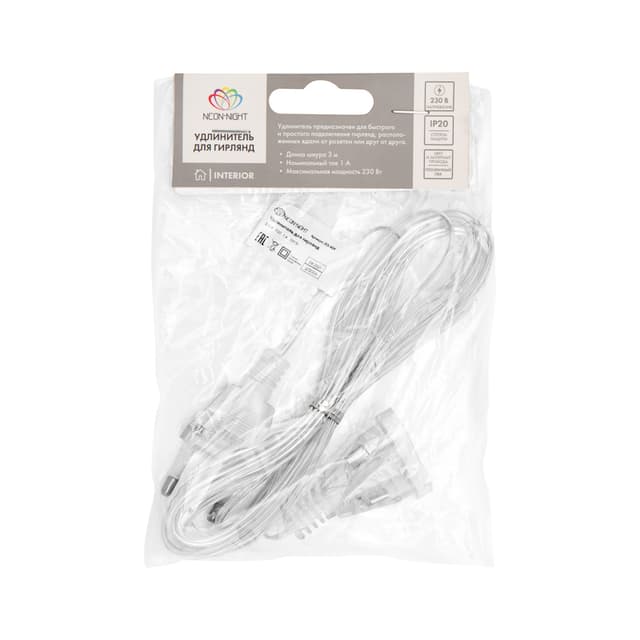 Удлинитель предназначен для быстрого и простого подключения гирлянд, расположенных вдали от розетки или друг от друга.